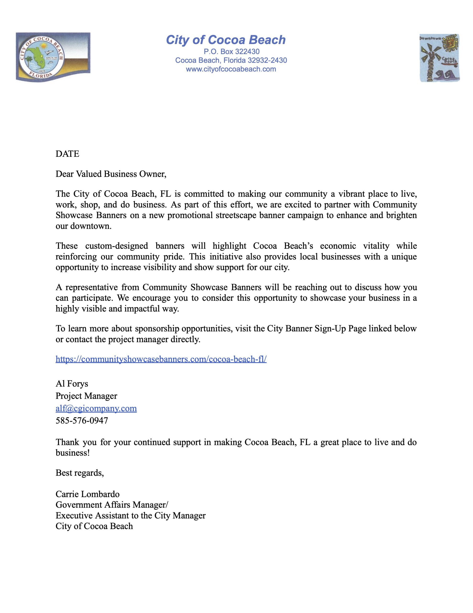Welcome to the Cocoa Beach, FL Community Banner Program!